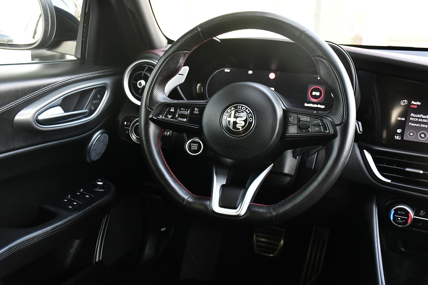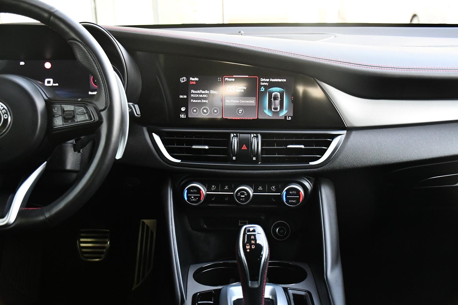 Možnost dokoupení záruky na všechny součástky až na 48 měsíců. 100% garance na počet ujetých kilometrů. Prověřené vozy společností Cebia s možností nahlédnutí do výpisu Cebia Reportu. Dále si také můžete nechat prověřit vůz vlastním mechanikem či autorizovaným servisem. Vůz původem z Německa po 1. majiteli. Výbava vozidla: ( Airbag spolujezdce lze deaktivovat Elektricky nastavitelná sklopná vnější zrcátka Vnější zrcátka s automatickým stmíváním AUX-IN konektor Elektronická parkovací pomoc vpředu a vzadu Elektrické ovládání oken vpředu + vzadu Handsfree zařízení Bluetooth včetně audio streamingu Indukční nabíjecí podložka pro smartphone Infotainment systém: UConnect 3D Nav (barevný displej 8,8") Vnitřní zrcátko s automatickým stmíváním Isofix úchyty pro dětskou sedačku Automatická klimatizace 2 zóny Vyhřívaný volant Volant s pádly/tlačítky pro řazení Senzor světla a deště Středová loketní opěrka vpředu s odkládacím prostorem Digitální rádio (DAB) Zadní kamera Dělená/sklopná zadní sedadla (asymetrická) Tónovaná boční okna vzadu a zadní okno Posilovač řízení (aktivní řízení) Elektricky nastavitelná přední sedadla (6polohová) Vyhřívaná přední sedadla Rozhraní pro smartphone (Apple CarPlay a Android Auto) Zvukový systém Harman-Kardon Systém Start/Stop Tlačítko Start-Stop USB připojení Airbag řidiče/spolujezdce Protiblokovací systém brzd (ABS) Typ pohonu: pohon všech kol Protiprokluzová regulace (ASR) Asistent brzdění (HBA / EBA) Elektronická kontrola stability (ESC) Elektronická kontrola trakce Asistenční systém: Autonomní asistent nouzového brzdění (AEB) Asistenční systém: Asistent rozjezdu do kopce (Hill-Holder) Asistenční systém: Asistent dálkových světel Asistenční systém: Varování před čelní srážkou (FCW) Asistenční systém: Asistent udržování jízdního pruhu (Lane Departure Warning) Asistenční systém: Asistent mrtvého úhlu Aktivní podvozek s elektronickou regulací tlumičů (Active Suspension) Bezklíčový vstup Systém hlavových airbagů Matrix LED světlomety (adaptivní světlomety) Filtr pevných částic (OPF) Systém kontroly tlaku v pneumatikách Boční airbag Samosvorný diferenciál (Q2) Vehicle-Dynamic-Control (ESP / VDC) Imobilizér (elektronický) Aktivní kontrola točivého momentu (AYC) Přístrojová deska a obložení dveří v kůži Vnější zrcátka černá, lesklá LED blinkry integrované do vnějších zrcátek Zesílený brzdový systém Brzdová světla s nouzovou funkcí (automatické zapnutí výstražných blinkrů) Černý strop Dynamic Steering Torque (DST) Elektronický rozdělovač brzdné síly (EBD) Asistenční systém: systém dynamiky jízdy Alfa Romeo D.N.A. Černé rámy oken Černá přední maska Přední sklo odrážející infračervené záření Rohože Držáky nápojů Automatická převodovka (8stupňová) Napínače bezpečnostních pásů Přihrádka na rukavice s funkcí chlazení Zadní světla LED Vnitřní výbava: Interiérové lišty hliníkové Karoserie: 4 dveře Opěrky hlavy vzadu Kontrola brzděn Centrální zamykání s dálkovým ovládáním Tato nabídka není návrh na uzavření kupní smlouvy dle zákona 89/2.