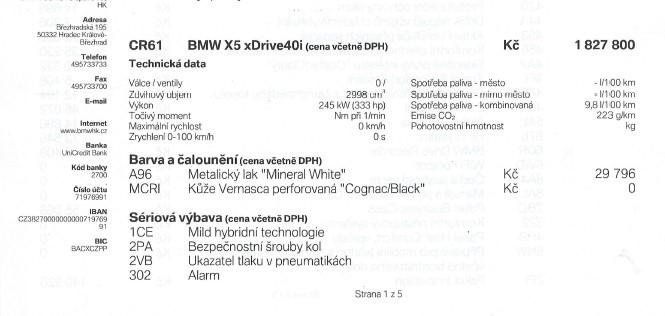 Možnost dokoupení záruky na všechny součástky až na 48 měsíců. 100% garance na počet ujetých kilometrů.\nPrověřené vozy společností Cebia s možností nahlédnutí do výpisu Cebia Reportu.\nDále si také můžete nechat prověřit vůz vlastním mechanikem či autorizovaným servisem.\nVůz původem z ČR po 1. majiteli. Příplatková výbava za 750.000Kč. Výbava vozidla: (Sport-automatická převodovka, M SPORTOVNÍ BRZDA, ČERVENÁ VYSOKÝ LESK, Zavazadlový prostor paket, Komfortní sedadlo s pamětí,3. řada sedadel, LED Fog lights, Aktivní ochrana, Driving Assistant Professional, Volant s koženým potahem M, Aktivní ochrana chodců, M Sportovní výfukový systém, Zabezpečovací systém, M Sportovní paket, Klimatizovaná sedadla přední, Adaptivní diodový světlomet, Dálkové světlo asistent, Active Guard Plus, Systém parkovací asistence Plus, M aerodynamický paket).\nTato nabídka není návrh na uzavření kupní smlouvy dle zákona 89/2.