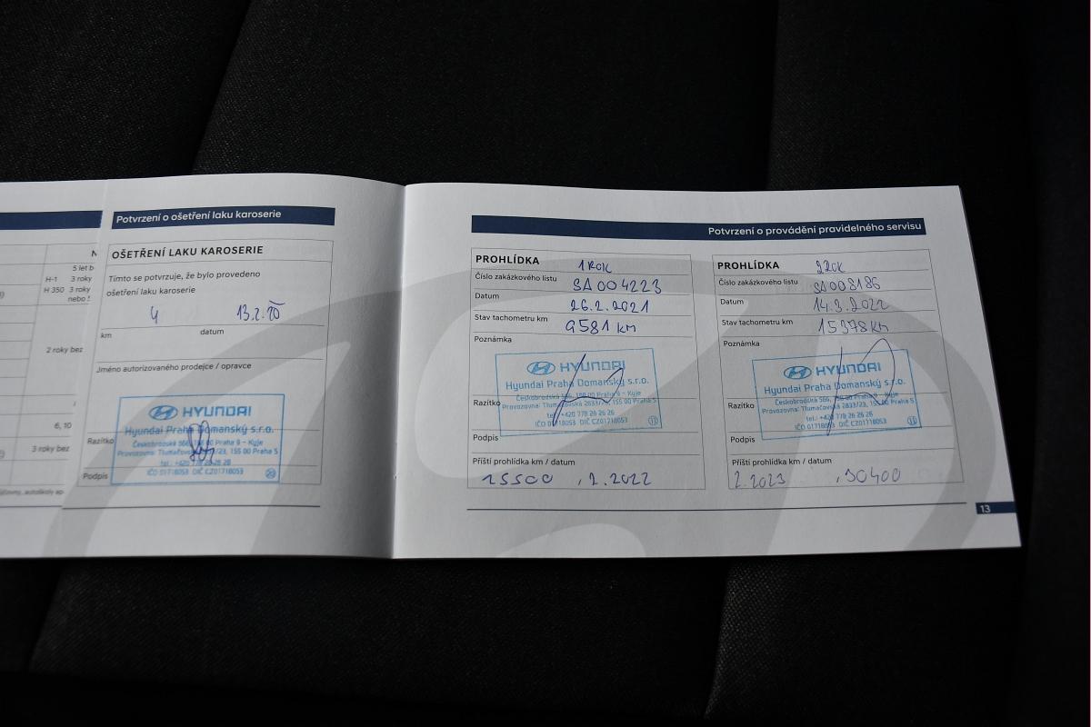 Možnost dokoupení záruky na všechny součástky až na 48 měsíců. 100% garance na počet ujetých kilometrů. Prověřené vozy společností Cebia s možností nahlédnutí do výpisu Cebia Reportu. Dále si také můžete nechat prověřit vůz vlastním mechanikem či autorizovaným servisem. Vůz původem z ČR se servisní historii v autorizovaném servisu Hyundai. Tato nabídka není návrh na uzavření kupní smlouvy dle zákona 89/2.