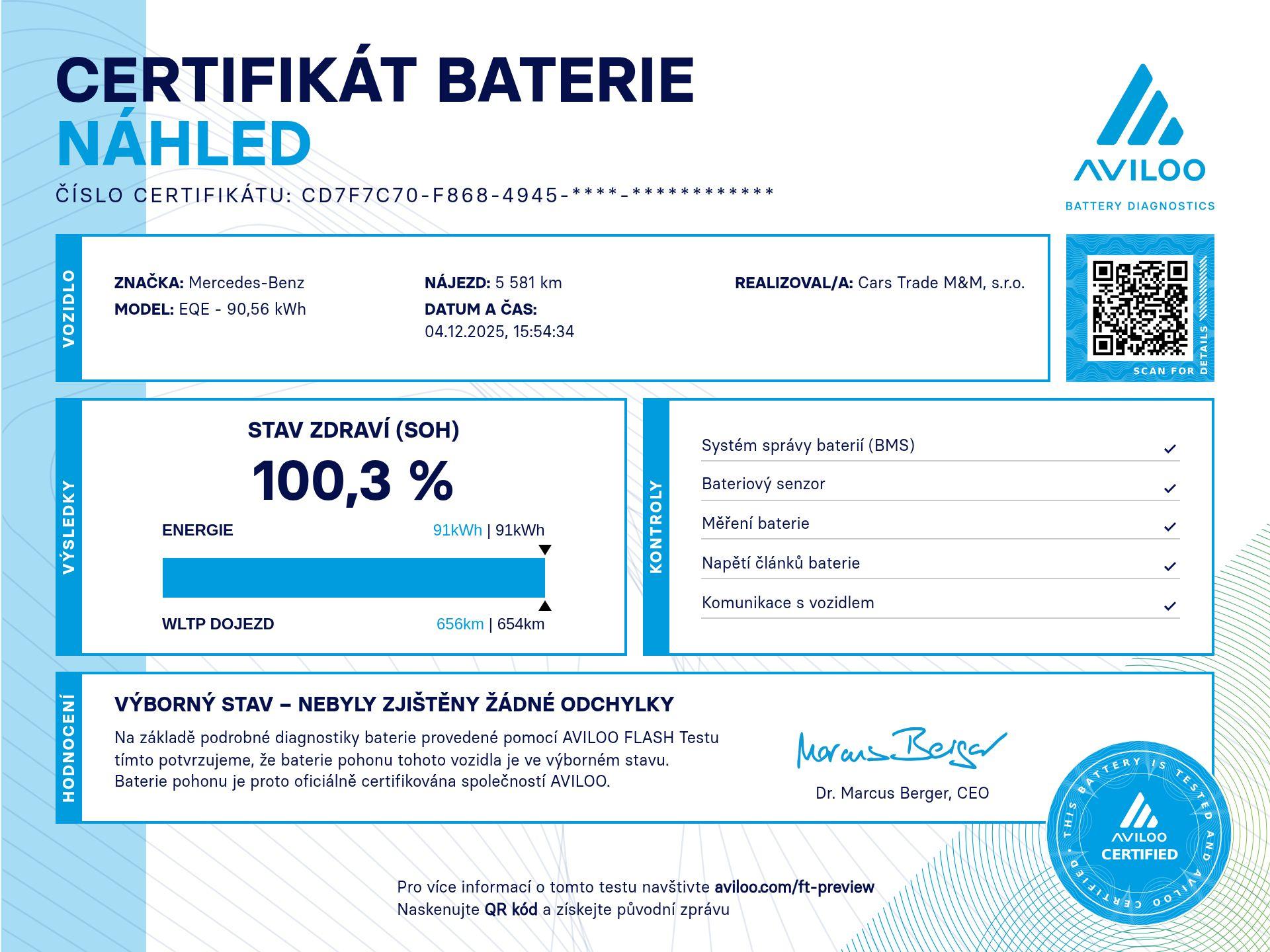 Proběhla kontrola nezávislá kontrola baterie s výsledkem 100%SoH. Možnost dokoupení záruky na všechny součástky až na 48 měsíců. 100% garance na počet ujetých kilometrů. Prověřené vozy společností Cebia s možností nahlédnutí do výpisu Cebia Reportu. Dále si také můžete nechat prověřit vůz vlastním mechanikem či autorizovaným servisem. Vůz původem z Rakouska po 1. majiteli. Tato nabídka není návrh na uzavření kupní smlouvy dle zákona 89/2.